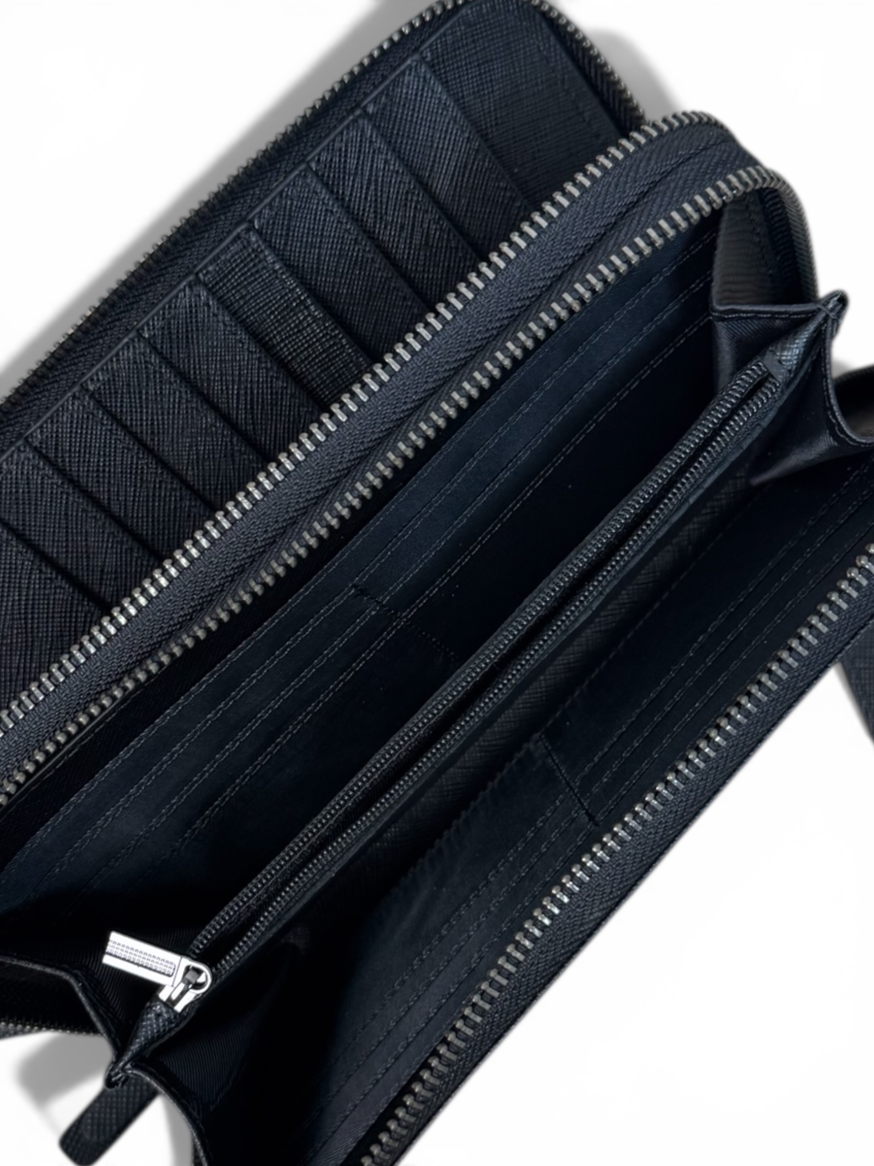 Особенность модели — ремешок/отделение, куда можно просунуть руку: портмоне удобно носить в руке, оно не выскальзывает и всегда под контролем. Два замка (2 молнии) помогают разделить содержимое: отдельно деньги и документы, отдельно карты и мелочи — так быстрее находишь нужное и внутри всегда порядок.