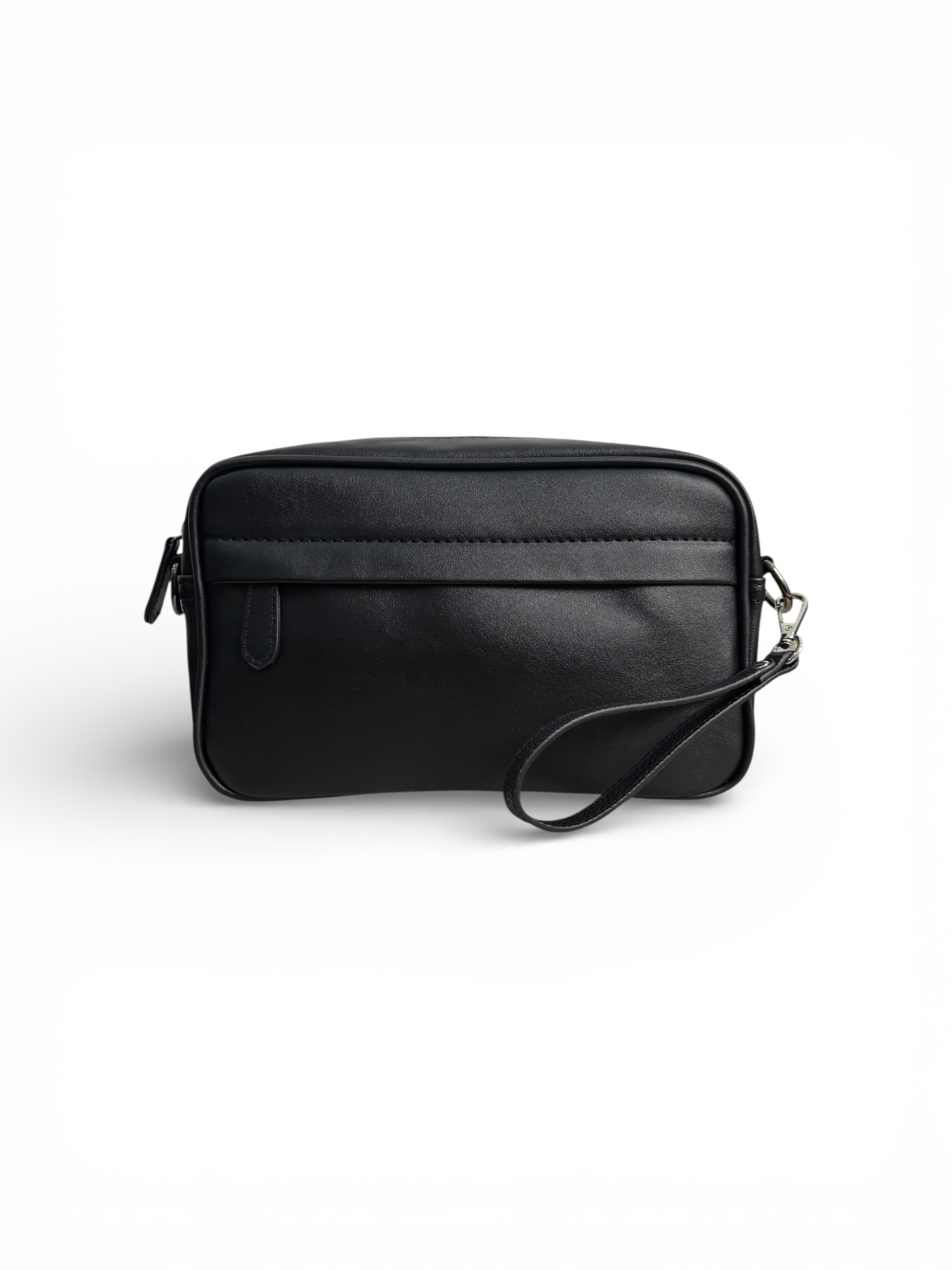 Классическая чёрная барсетка из полиуретана — акцент, который подчеркивает статус.